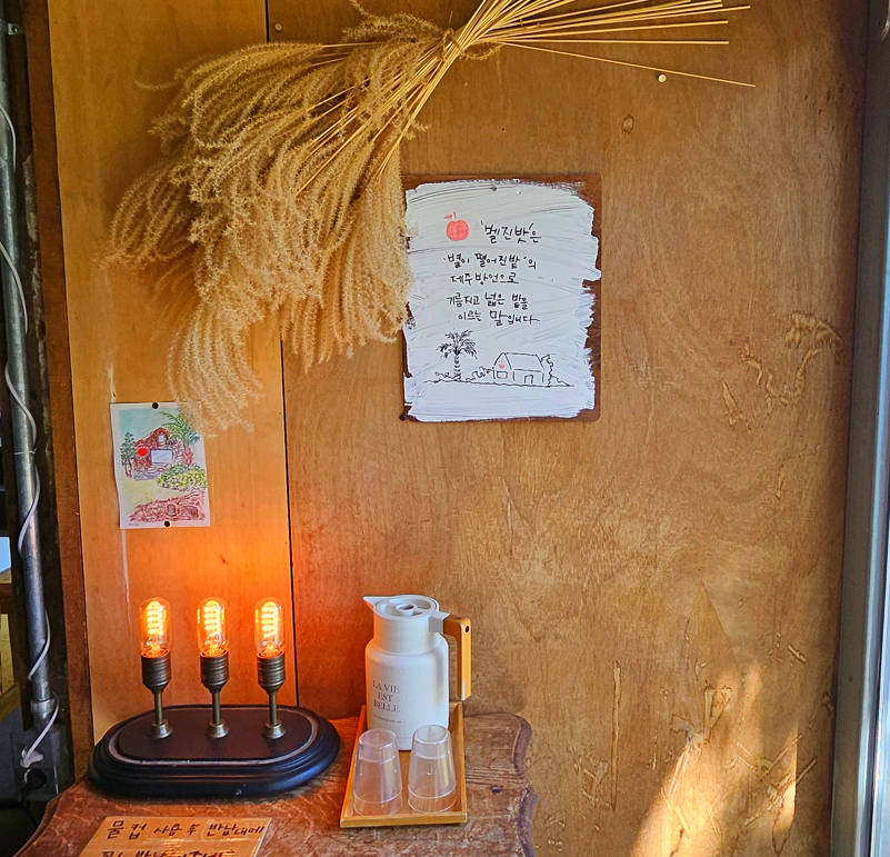 주차장에서 오른쪽으로 걷다보면 별진밧 감귤 모양을 찾아서 골목을 따라 들어오시면 되요.
