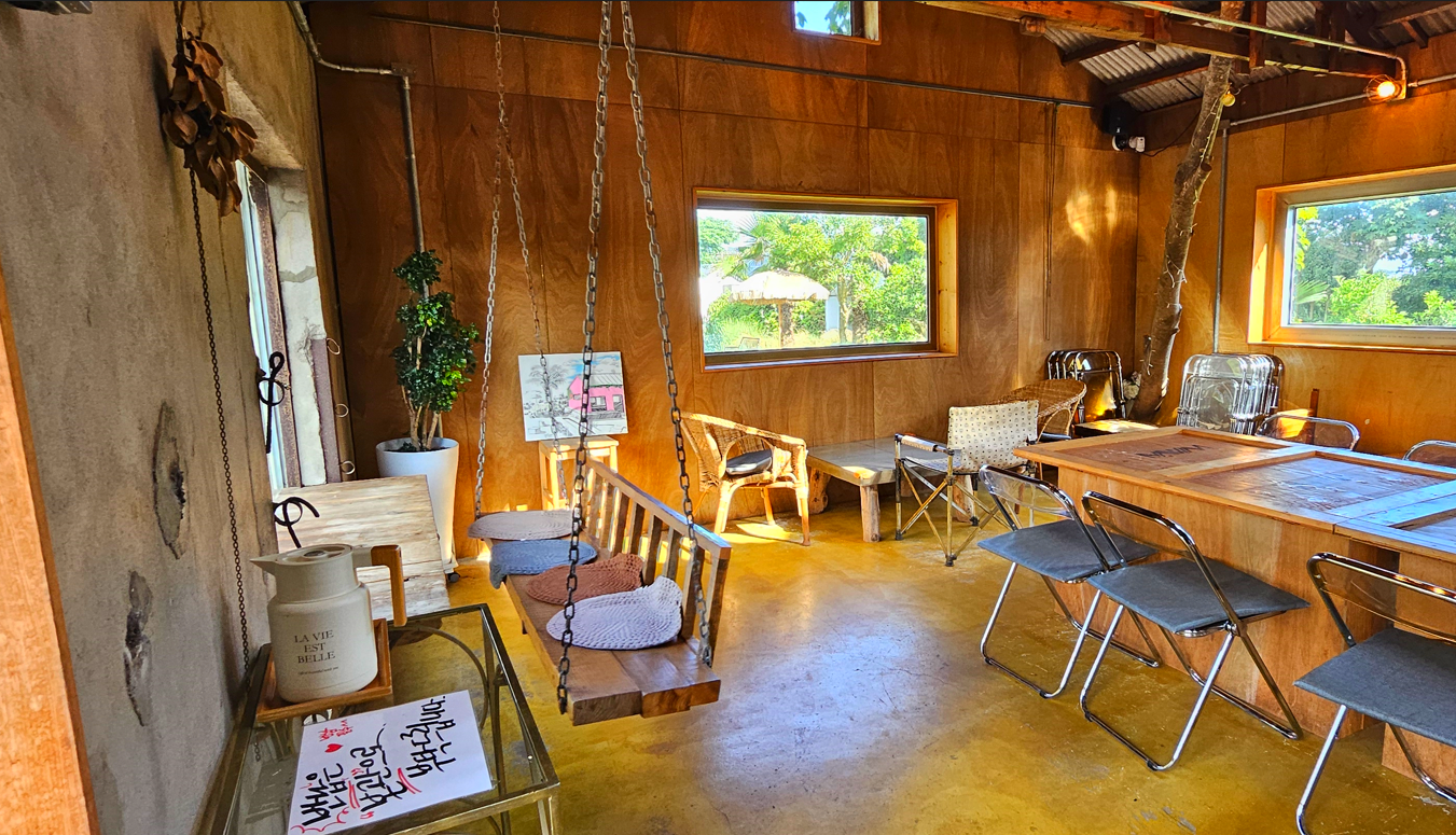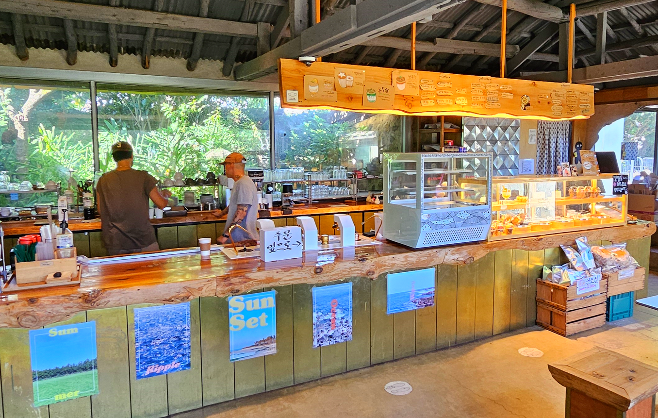 주변의 감귤밭과 자연 경관이 카페와 잘 어우러져, 마치 자연 속에 숨은 작은 쉼터🌿 같은 느낌이 들었답니다. 날씨가 많이 더워 오래 머물지는 못했지만, 잠시 서 있는 것만으로도 시원한 풍경에 눈이 즐거웠어요. ☀️ 특히 어디에서든 카메라만 들면 인생샷📸을 남길 수 있을 만큼 포토존으로 가득했어요. 감귤밭 배경도 좋고, 카페 외관도 멋져서 여행 사진 남기기에 딱이었습니다.